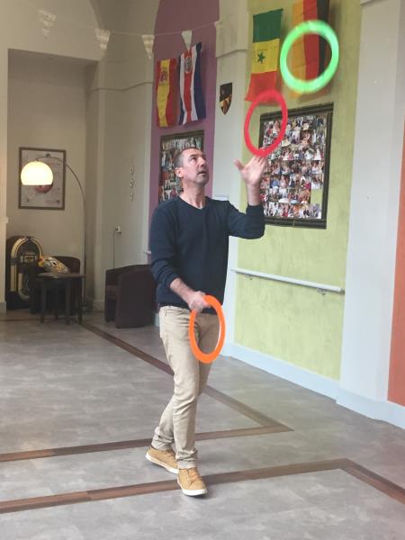 Pari gagné pour Stéphane et défi relevé pour nos résidents qui sans s’en rendre compte ont pris plaisir à apprendre, à apprivoiser les gestes.. Nos résidents sont devenus petit à petit de vrais jongleurs.