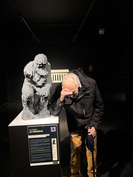 Nos résidents ont pu admirer un impressionnant T. Rex de plus de 6 mètres de long, la magnifique reproduction de "La Nuit étoilée" de Van Gogh, ou encore "Le Penseur de Rodin", entièrement recréés en briques colorées. De véritables œuvres qui ont suscité surprise, souvenirs et nombreuses conversations. Mais cette sortie ne consistait pas seulement à regarder… Tout au long du parcours, nos aînés ont : marché sur une belle distance, travaillé leur équilibre, sollicité les bras, stimulé leur coordination, et entretenu les échanges sociaux. Autrement dit : une sacrée séance de kiné déguisée en sortie culturelle ! Cette première sortie a parfaitement montré qu’on peut prendre soin de son corps tout en s’amusant, que le mouvement peut rimer avec émerveillement, et que la culture est aussi un formidable moteur de bien être. Une chose est sûre : ils ont adoré… et nous aussi ! Vivement la prochaine aventure !