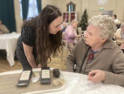 Le maître gaufrier est venu avec une impressionnante boule de vanille de Madagascar et a montré avec soin comment il découpait les gaufres encore tièdes et les garnissait de cette crème parfumée avant dégustation. Il ne restait alors plus qu’à nos aînés et à leurs proches à savourer ce moment d’exception.