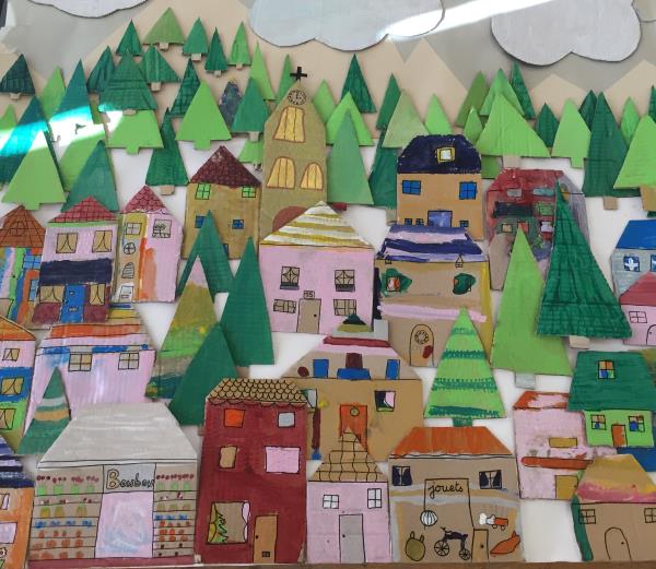 Plusieurs fois dans l’année, aînés et enfants de l’école Jeanne D’Arc, notre partenaire, se rencontrent pour partager des moments artistiques. Cette fois ci, nous avons décidé de créer notre Ehpad St Maur et sa chapelle, l’école et la ville de La Madeleine.